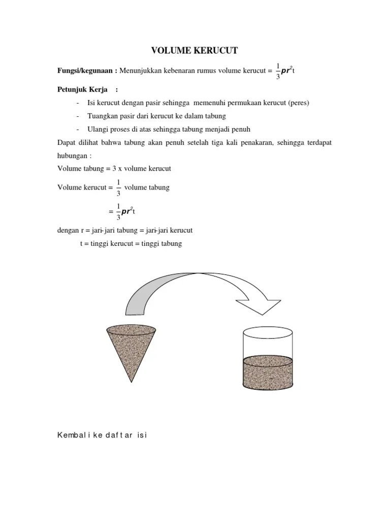 rumus untuk mencari volume dan luas kerucut. Tentukan luas permukaan dari benda tersebut! Jadi volume tabung tersebut adalah 4312 cm 3. Tapi, apakah detikers masih ingat rumus volume tabung? Tentukan luas permukaan dari benda tersebut.